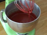 Zum Schluss die Vanille und den Farbstoff unterrühren.