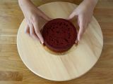Legen Sie den Pappkreis auf die Drehscheibe. Etwas Buttercreme auf den Kreis geben und den Biskuit in die Mitte legen.