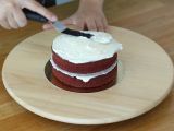 Versetzen Sie Ihre Gäste beim Dessert mit diesem Red Velvet Cake in Erstaunen! Dieser extra leckere Maxi-Kuchen aus den USA besteht aus drei Schichten Biskuit, die mit Buttercreme bestrichen sind. Apropos Buttercreme: Sie verteilen sie auch rund um den Kuchen, um einen "Layer Cake"-Effekt zu erzielen.