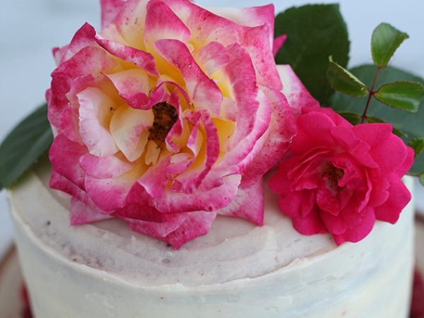 für eine romantische Dekoration haben wir Rosen und Himbeeren aus dem Garten verwendet.