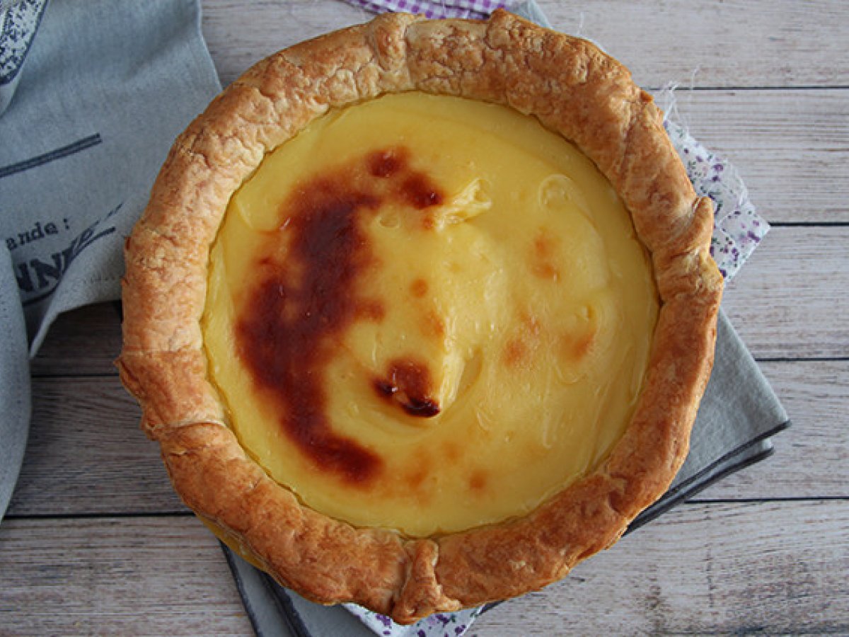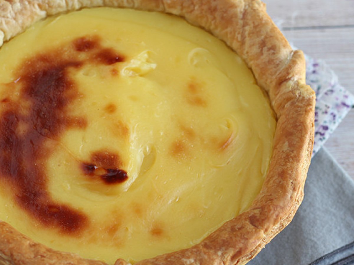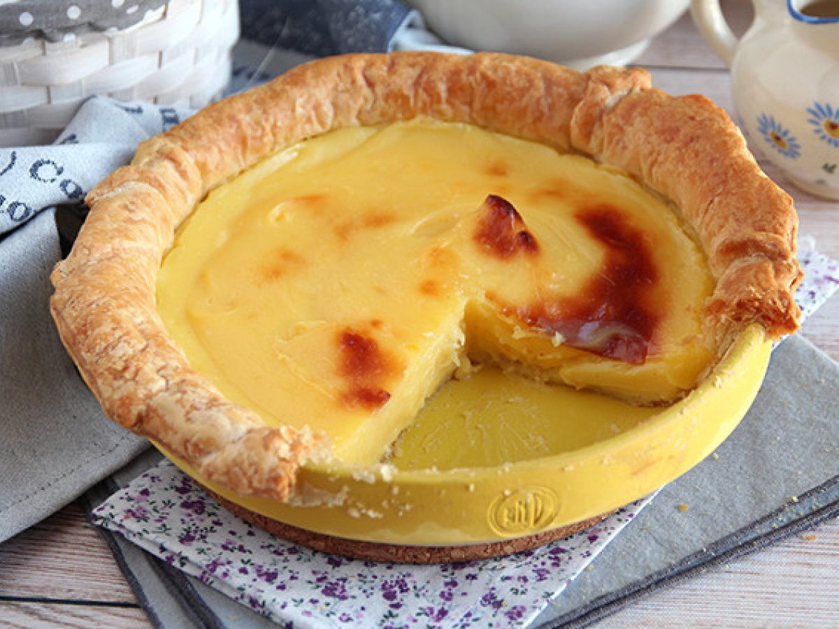 Ob Sie schon einmal in Portugal waren oder nicht, Sie haben wahrscheinlich schon von einer der berühmtesten Süßigkeiten des Landes gehört: Pasteis de Nata oder Pasteis de Belem. Ein köstliches Gebäck mit einem knusprigen Blätterteigboden und einer besonderen Füllung, die uns an Flan erinnern könnte. Da es uns so gut schmeckt und wir wissen, dass es Ihnen auch so geht, haben wir beschlossen, eine riesige Version zu machen, einen Pasteis de Nata im Tortenformat, den wir mit der Familie genießen können und der viel einfacher zu teilen ist, wenn Gäste zu uns kommen. Viel besser, nicht wahr? Zögern Sie nicht und überraschen Sie sich selbst mit dem köstlichen Geschmack dieses typisch portugiesischen Desserts.