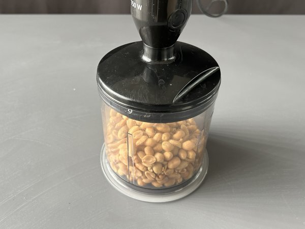 Die Erdnüsse mit einem Fleischwolf zerkleinern und dabei darauf achten, dass keine Klumpen entstehen.