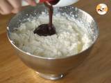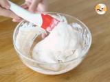 Das geschlagene Eiweiß zum Pulver geben und vorsichtig vermischen, dabei das Eiweiß anheben, damit es nicht zerdrückt wird.