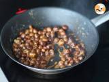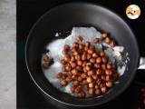 Wasser und Zucker bei mittlerer Hitze in eine Pfanne geben. Wenn die Mischung Blasen bildet, fügen Sie die Haselnüsse hinzu.