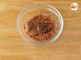 Zerkleinern Sie die Spitzen-Crêpes zu Glitzer und fügen Sie die Haselnusspraline und die geschmolzene Milchschokolade hinzu. Gut mischen.
