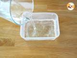 Bevor die Temperatur 36 °C erreicht (wenn Ihre Mischung beispielsweise 39 °C hat), nehmen Sie die Vorspeisen aus dem Gefrierschrank und legen Sie sie (ohne Unterlage) auf ein erhöhtes Gestell. Stellen Sie ein Gefäß unter dieses Gitter. Entfernen Sie den Kreis (erhitzen Sie ihn ein wenig mit den Händen oder mit einer Lötlampe, wenn er nicht herausgehen möchte) sowie den Rhodoïdstreifen.