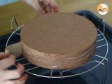 Legen Sie Ihre knusprig bedeckte Dacquoise auf ein Gestell. Legen Sie den Kreis herum (zwischen Keks und Kreis sollte ein Abstand von ca. 2 cm bleiben). Den Umriss des Kreises mit einem Streifen Rhodoïd auskleiden. Füllen Sie mit einem Spritzbeutel den Rand und dann den gesamten Kreis mit Schokoladenmousse.