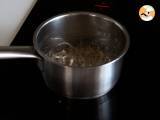 Geben Sie den Zucker und das Wasser bei niedriger/mittlerer Hitze in einen Topf und warten Sie, bis sich Karamell bildet. Bei Bedarf umrühren.