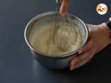 Wenn das Karamell goldbraun ist, vom Herd nehmen und alles in die Form gießen. Stellen Sie die Form in den Kühlschrank, während Sie die beiden anderen Mischungen zubereiten.