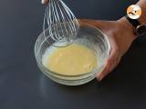 In einer anderen Schüssel das Eigelb mit dem Zucker aufhellen. Dann Milch und Öl dazugeben und gut verrühren.