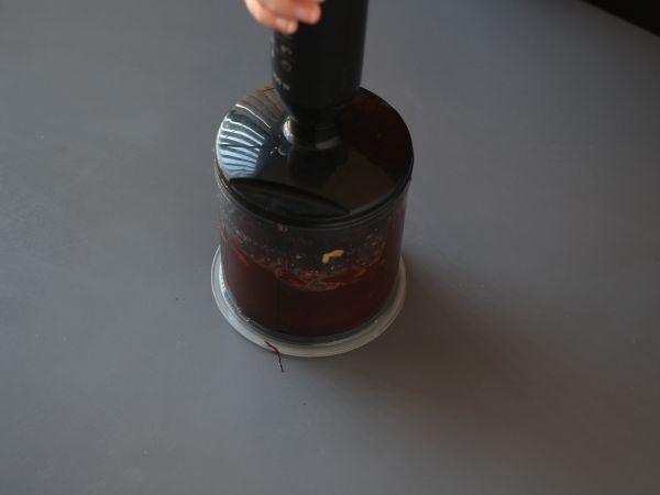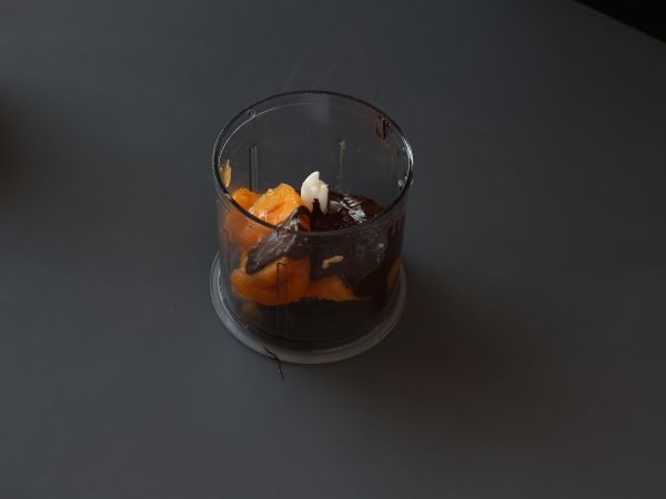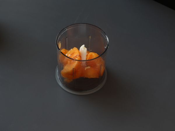 Das Fruchtfleisch der Kakis in den Blitzhacker geben.