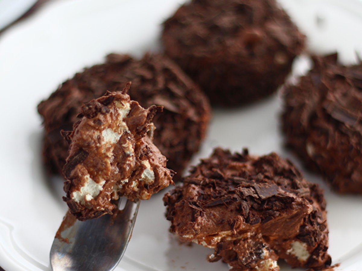 Schokosplitter: Sie können keine finden? Reiben Sie eine Tafel Schokolade mit einem Sparschäler und Sie haben selbstgemachte Schokospäne. Sie können auch durch gehackte Haselnüsse, Mandelblättchen usw. ersetzt werden.