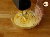 Das Eiweiß steif schlagen und dann unter den Teig heben. Die Mischung sollte nicht vollständig gleichmäßig sein.