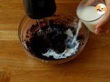 Fügen Sie der Mischung Kakao, Mehl und Salz hinzu. Unter ständigem Rühren nach und nach die Milch hinzufügen.