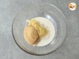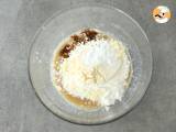 Sojajoghurt, Vanilleextrakt, Reismehl, Maisstärke und Backpulver hinzufügen und vermischen.