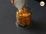 Mischen Sie alles und passen Sie die Zuckermenge bei Bedarf an (die Mango kann mehr oder weniger süß sein).