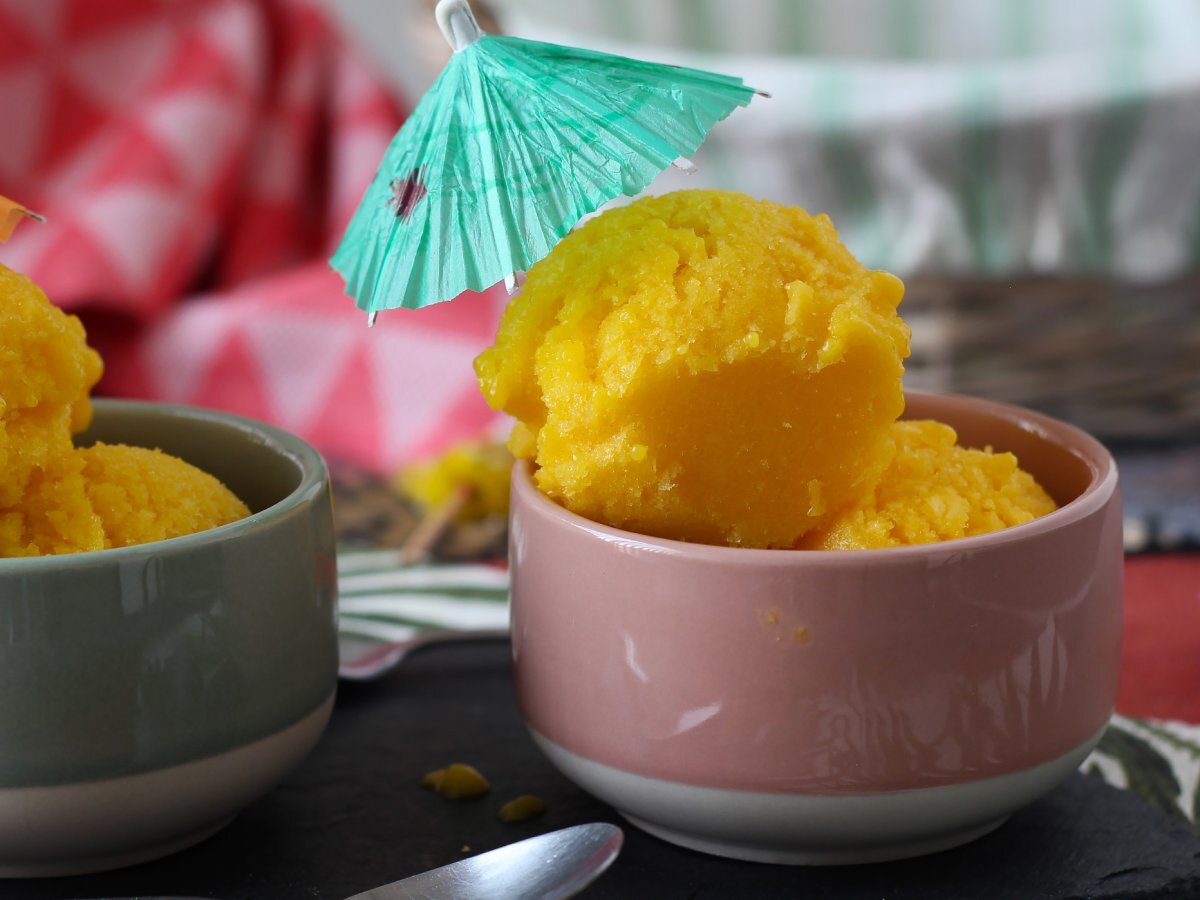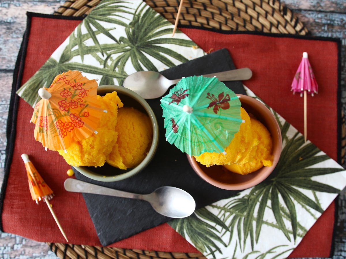 Sorbet mit grüner zitrone und mango, aus nur 3 zutaten und bereit in 5 minuten!