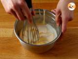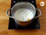 Entfernen Sie die Zimtstange und die Zitronenschale aus der Milch und gießen Sie sie dann nach und nach unter Rühren in die vorherige Mischung.
