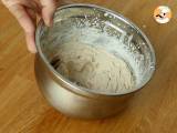 1 großen Esslöffel Spekulatiuskrümel 30 Sekunden in der Mikrowelle schmelzen. Mischen Sie diese flüssige Paste mit der Schlagsahne.