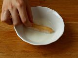 Zerdrücken Sie die Spekulatius. Die Löffelbiskuits in der Milch einweichen und in drei Teile teilen.