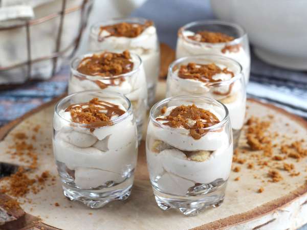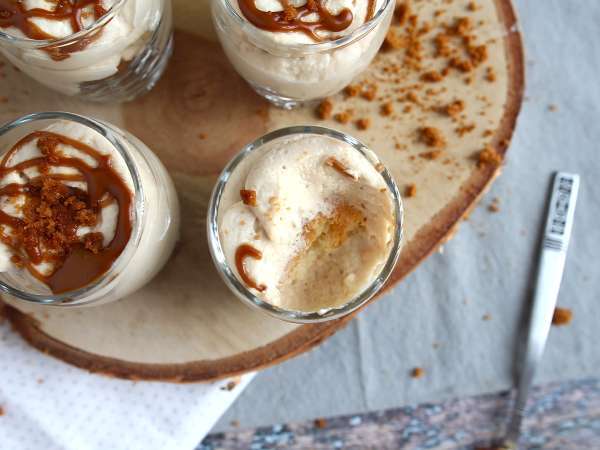 Normalerweise probieren wir zum Abschluss des Essens gerne Spekulatiuskekse zum Kaffee. Wir können diesem knusprigen kleinen Keks einfach nicht widerstehen. Als der Kuchen durch diese Verrines ersetzt wurde wollten wir jedoch nie zurückkehren. Und Sie, werden Sie diesem Ultra-Gourmet-Dessert widerstehen können?!