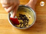 Die geschmolzene Butter und 20 g Schokoladenstückchen hinzufügen und gut vermischen.