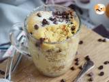 Geben Sie den Keksteig in zwei gefettete Tassen und bestreuen Sie ihn mit Schokoladenstückchen (den restlichen Stücken).