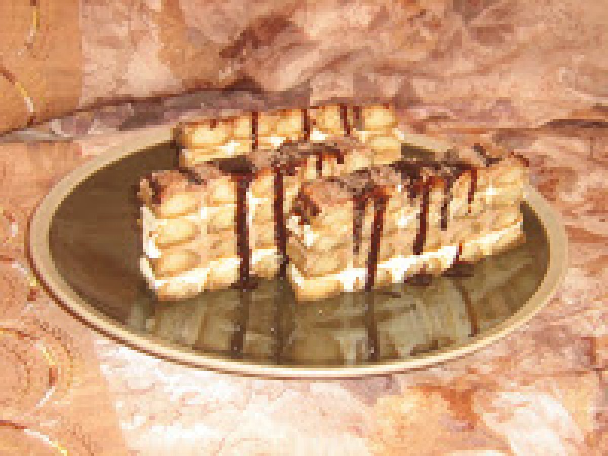 - Auf einem Sortierplatte Biskotten in Kaffee getränkt und mit einem weißen Füllung.