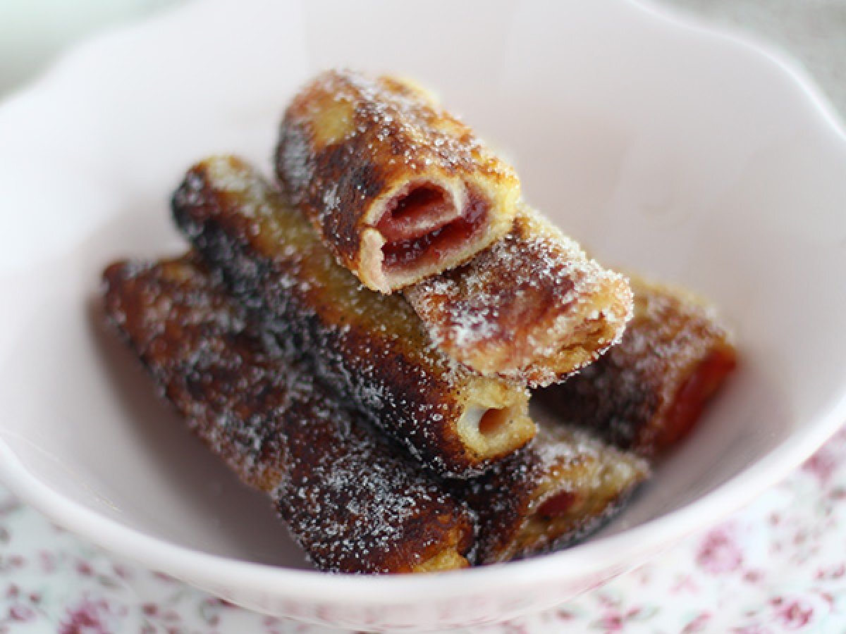 Mit Zucker bestreuen und fertig! Ihre Toastbrot-Wraps sind fertig!