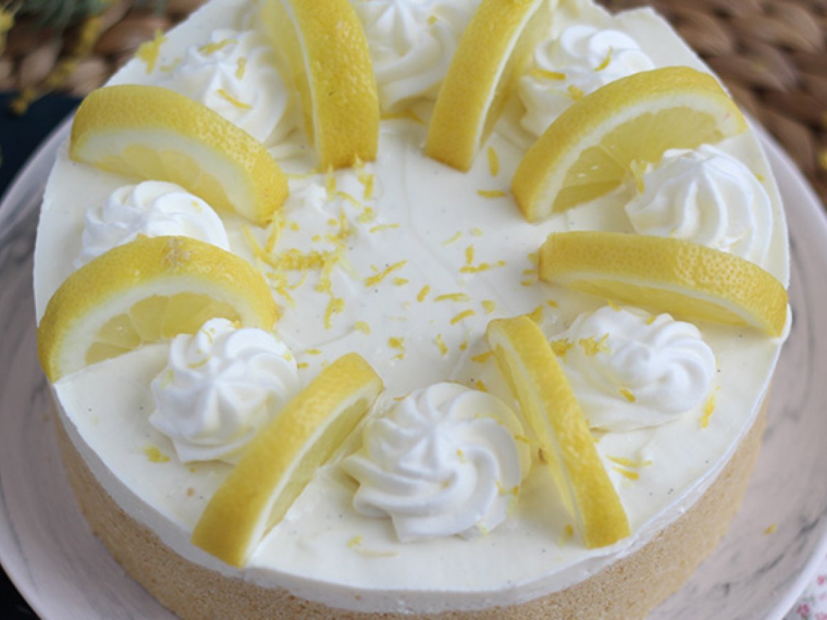 Sie können den Käsekuchen mit geschlagener Sahne und Zitronenscheiben dekorieren, um ihm ein frisches Aussehen zu verleihen.
