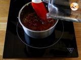 Den Zucker in einem Topf schmelzen. Bei Bedarf umrühren. Geben Sie das Wasser nach und nach hinzu und vermischen Sie es mit einem Spatel.