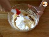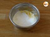 Eigelb, Zucker, Vanille und Salz verrühren. Milch und Öl hinzufügen und verrühren. Mehl, Backpulver und Natron hinzufügen.