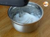 Schlagen Sie das Eiweiß auf und fügen Sie dann den Zucker hinzu, sodass ein Baiser entsteht.