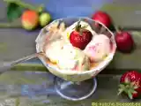 - Noch weiches Vanilleeis in eine Schüssel geben. Kirschen hineingeben und verrühren.