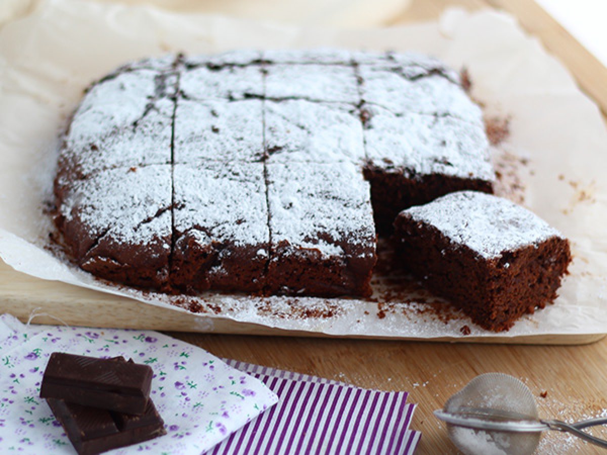 Die Form mit Backpapier auslegen (nicht mit Butter bestreichen, da keine Milchprodukte verwendet werden). Die Masse hineingeben und glatt streichen.