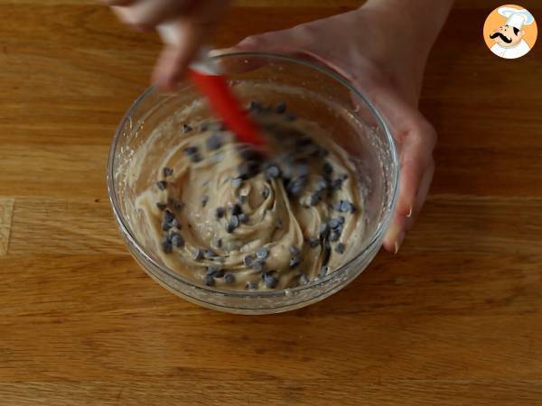 Die Bananen mit dem Vanilleextrakt mixen, bis eine glatte, homogene Textur entsteht. Die Schokoladenchips hinzufügen und mit einem Spatel (oder Löffel) unterheben.