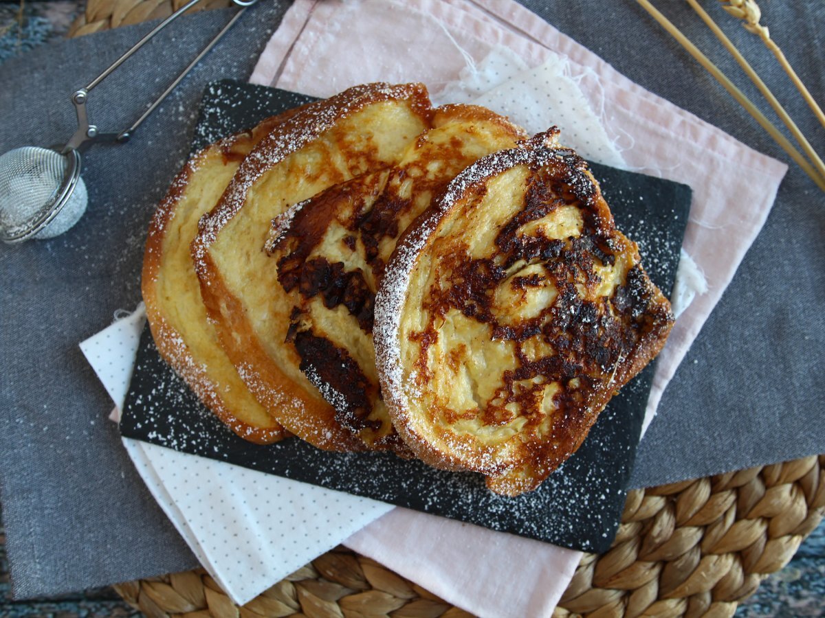 Wenn Ihr Brioche hart ist, lassen Sie es länger in der Mischung einweichen. Bei frischen Brioches sollten Sie sie nicht zu lange einweichen.