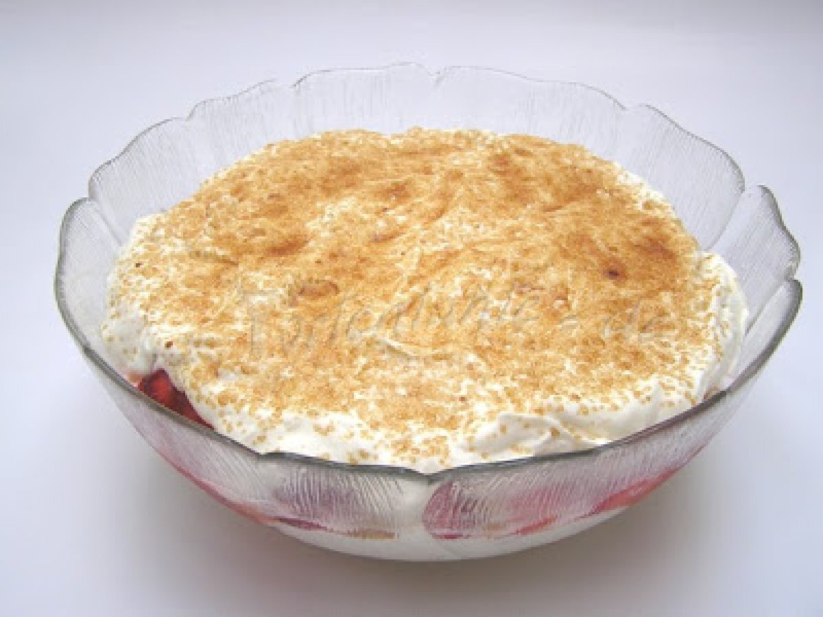 - Schließlich heben die Meringues zuvor in das Gemisch zerkleinert und alle abwechsend Schichten mit den Früchten in eine Schüssel geben.