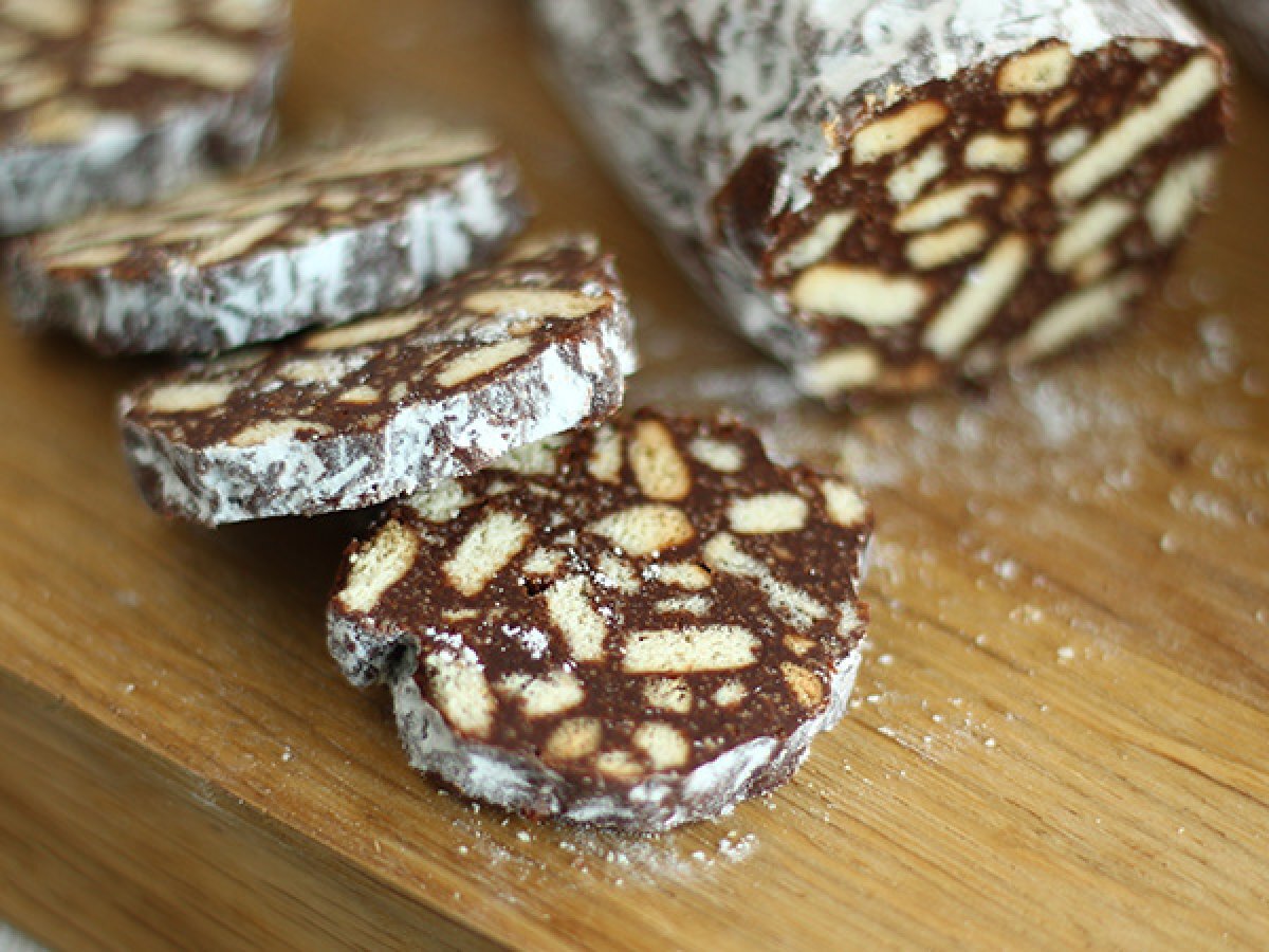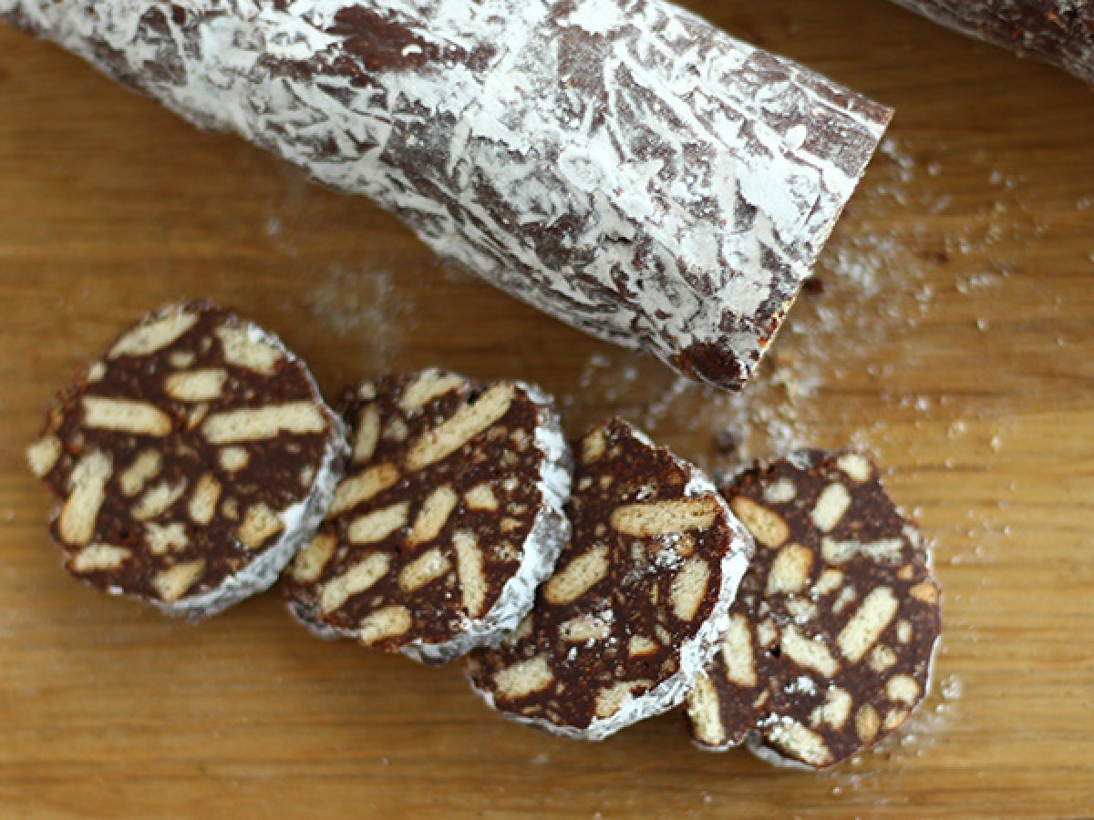 Alternativen: Wenn Sie getrocknete Nüsse mögen, können Sie statt Keksen auch Haselnüsse, Mandeln oder andere Nüsse hinzufügen. Ihre Zubereitung wird weniger wie eine Wurst aussehen, aber der Geschmack wird nicht zu kurz kommen ;-)