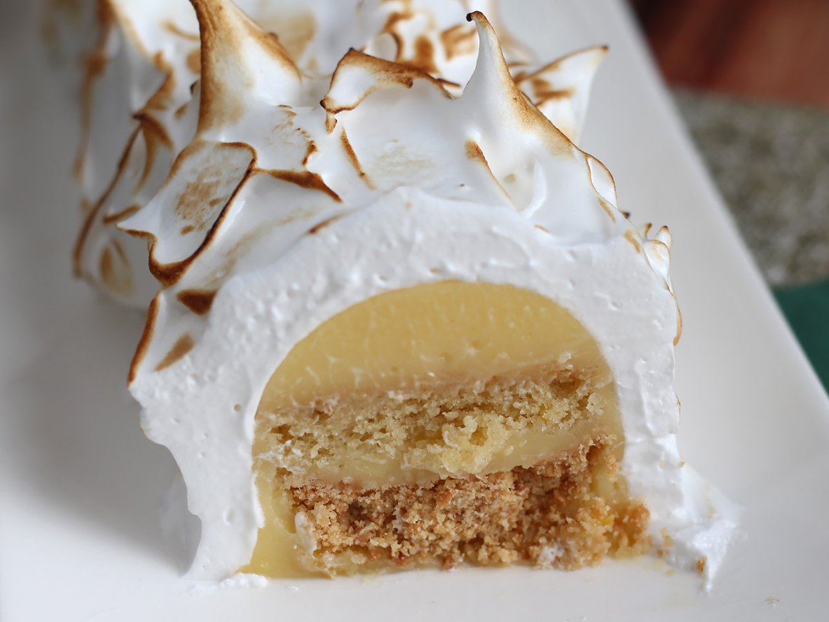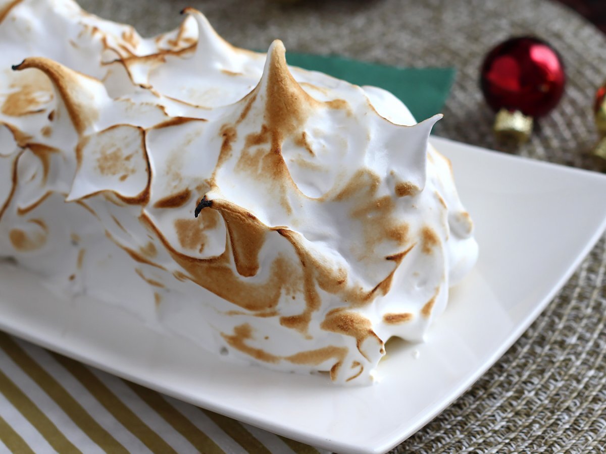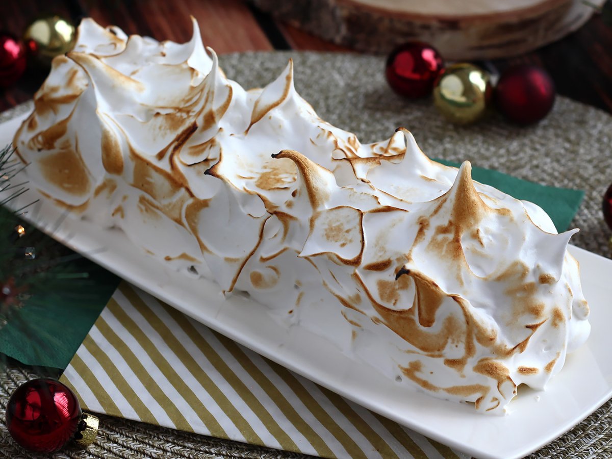 Recouvrir la bûche de meringue. Brûler au chalumeau.
