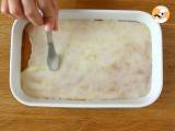 Über den Brownie gießen und vorsichtig verteilen, da die Oberseite des Brownies etwas empfindlich ist.
