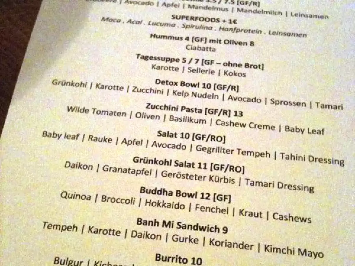 Als mich dann gestern eine liebe Freundin fragte, ob wir gemeinsam in der Mittagspause ins Gratitude gehen wollen, musste ich diese Gelegenheit natürlich nutzen! Als wir eintraten herrschte bereits eine eifrige Stimmung - zum Glück hatten wir reserviert! Denn alle Tische waren natürlich besetzt. Was mir sofort extrem positiv auffiel: die kleinen unbequemen Hocker sind bequemen Stühlen gewichen. Und die Sprüche an den Wänden fehlten. Ansonsten ist die Einrichtung klar und minimalistisch geblieben. Man vermutet gleich, dass hier der Fokus auf dem Teller und nicht an der Wand liegen soll. Ein Blick auf die Karte verriet: Auch hier wurde alles geändert. Die "I am grateful" & Co-Gerichte sind verschwunden. Jetzt kann man zwischen Buddha- oder Detox-Bowl, Burrito oder Grünkohl Salat wählen.