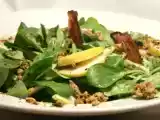 Feldsalat mit birnen-vinaigrette, zerkleinerten speck und sesam Vorspeise sehr einfach 20 min 10 minZutaten: 2 schöne, mittelreife Birnen 2 essloffel Zitronensaft 2 essloffel Walnussöl Salz frisch gemahlener Pfeffer 20 g Semmelbrösel 20 g Sesamsaat 1...