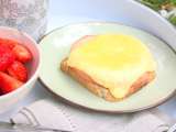 Zutaten: 400 ml Milch 2 Eier 2 Esslöffel Zucker (25 g) 1/2 Teelöffel Vanille Brioche-Scheiben (oder geschnittenes Brot) Konfitüre aus roten Früchten...