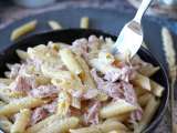 Zutaten: 360 g Nudeln (wir Penne Rigate) 200 ml Kochsahne 200 g gekochter Schinken (in Streifen oder Würfeln) 40 g Butter 30 g geriebener Parmesankäse 1...