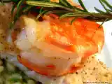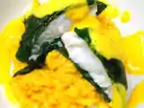 Zutaten: Cod Risotto mit Garnelen-Rakete Hühnerbrühe Lizenz TK Rucola Karotte Parmesan Zwiebel Risottoreis Cod Garnelen Brunnenkresse VerjusAls ersten Risotto