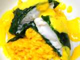 Zutaten: Cod: 500 g Kabeljaufilet ohne Haut 500 g grobes Meersalz 50 g Zucker Geröstete Zichorien 2 gelbe Chicorée 1 Orange; der Saft 400 ml Hühnerbrühe...