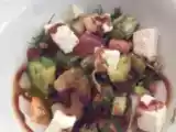 Hirtensalat mit sellerie Vorspeise sehr einfach 10 min 1 tag 1 hZutaten: 1 Bund Sellerie 4 Tomaten 1 Gurke 2 rote und grüne Paprika ½ Bund frischer Dill ½ Bund Petersilie 200 g Feta- Rund 40% Olivenöl Crema di Balsamico...