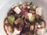 Zutaten: 1 Bund Sellerie 4 Tomaten 1 Gurke 2 rote und grüne Paprika ½ Bund frischer Dill ½ Bund Petersilie 200 g Feta- Rund 40% Olivenöl Crema di Balsamico...