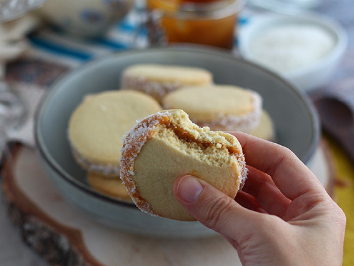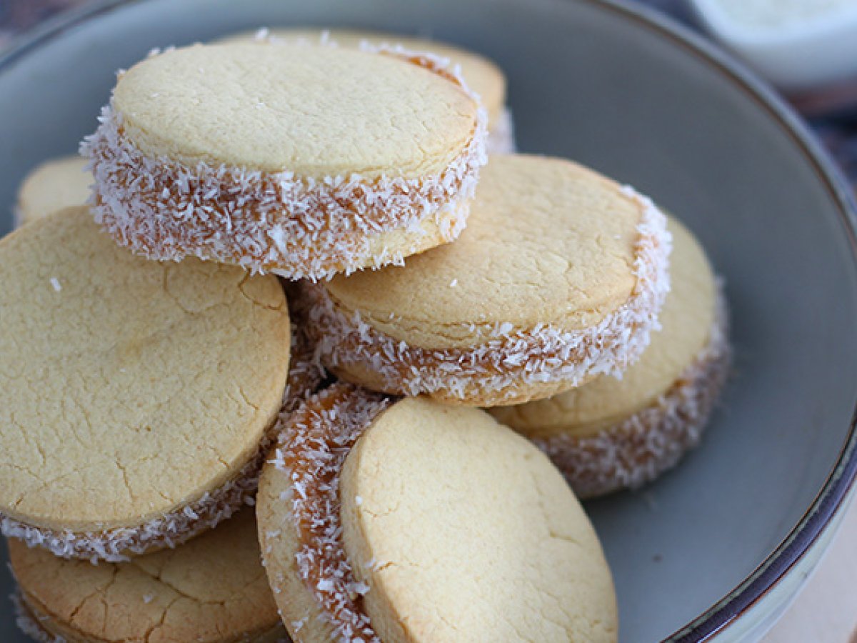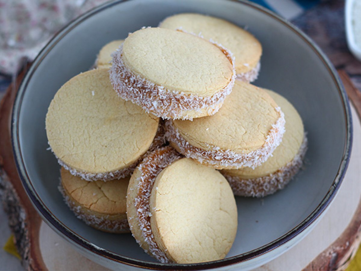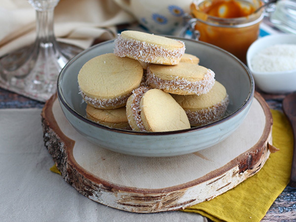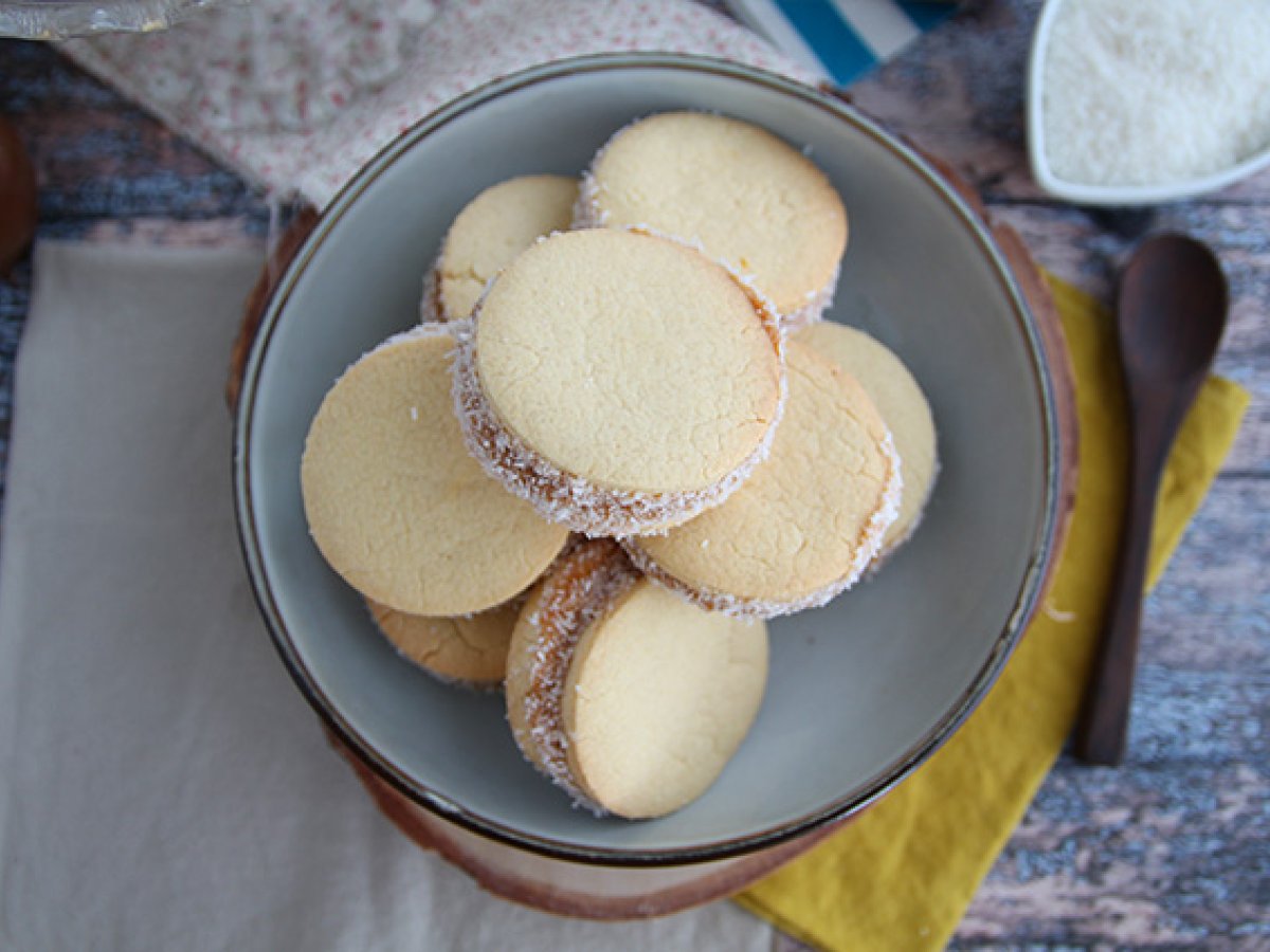 Alfajores - argentinisches mürbegebäck mit milchkonfitüre und kokosnuss